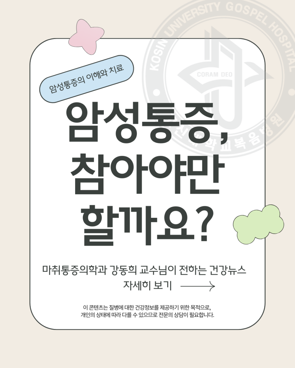 고신대학교복음병원은 이용자의 개인정보보호를 위한 기술적 대책으로서 여러 보안장치를 마련하고 있습니다. 이용자께서 보내시는 모든 정보는 방화벽장치에 의해 보호되는 보안시스템에 안전하게 보관/관리되고