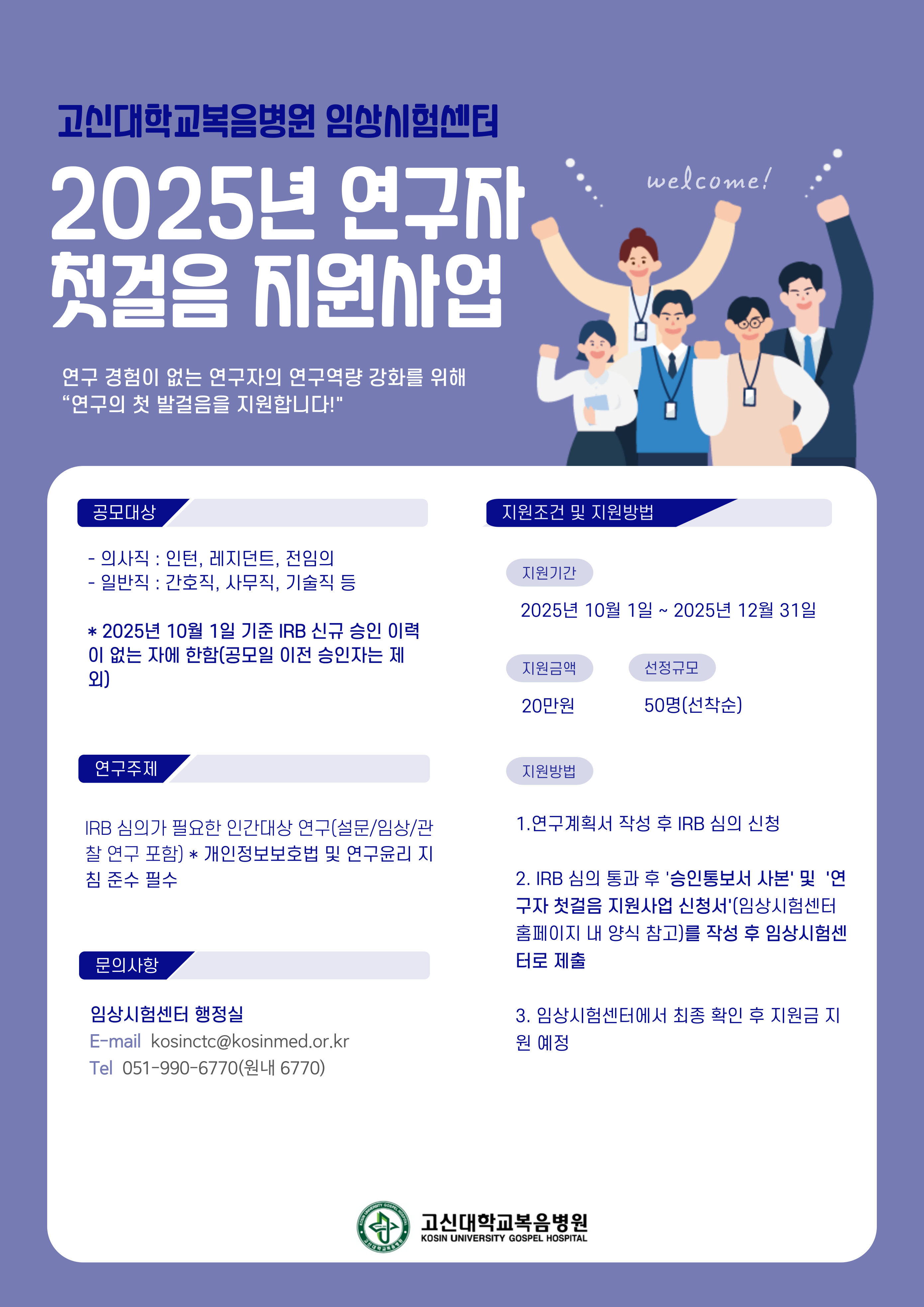 공지 임상시험센터 2025년 연구자 첫걸음 지원사업 안내
