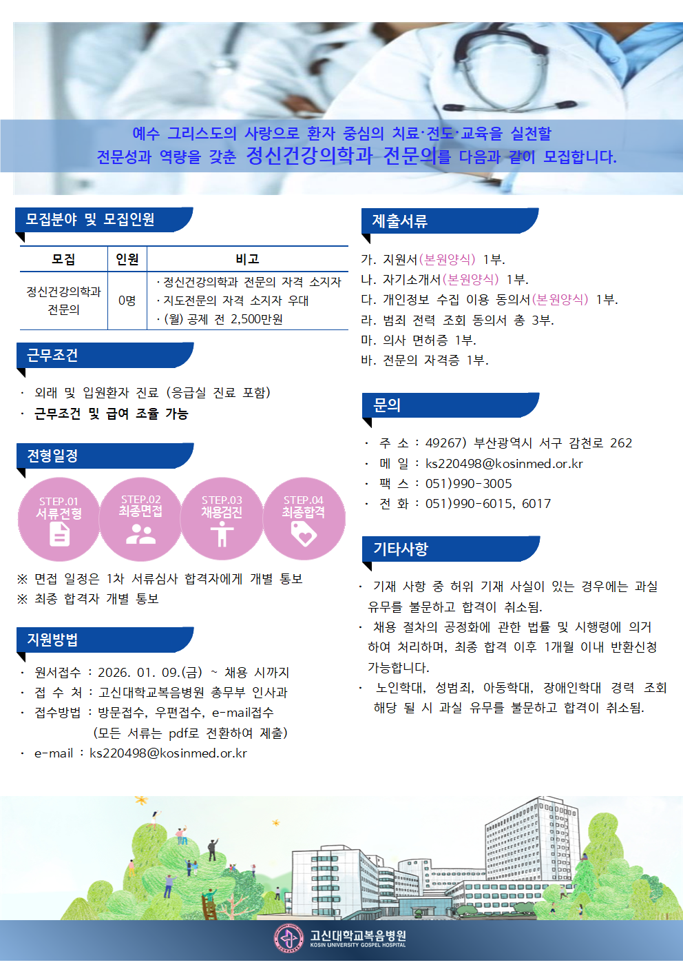 정신건강의학과 전문의 초빙공고
