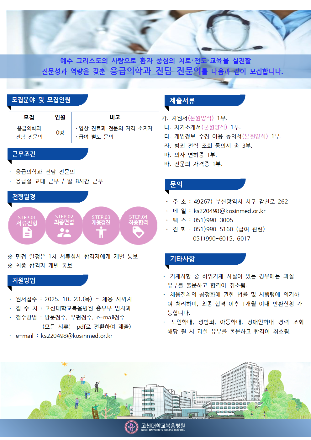 [일반직] 성명, 생년월일, 이메일, 휴대전화번호, 최종학력 및 학점, 면허사항 [의사직] 성명, 생년월일, 이메일, 휴대전화번호, 최종학력 및 학점, 면허증, 자격사항, 경력사항, 병역사항 [전공의] 성명, 생년월일, 휴대전화번호, 면허사항 |