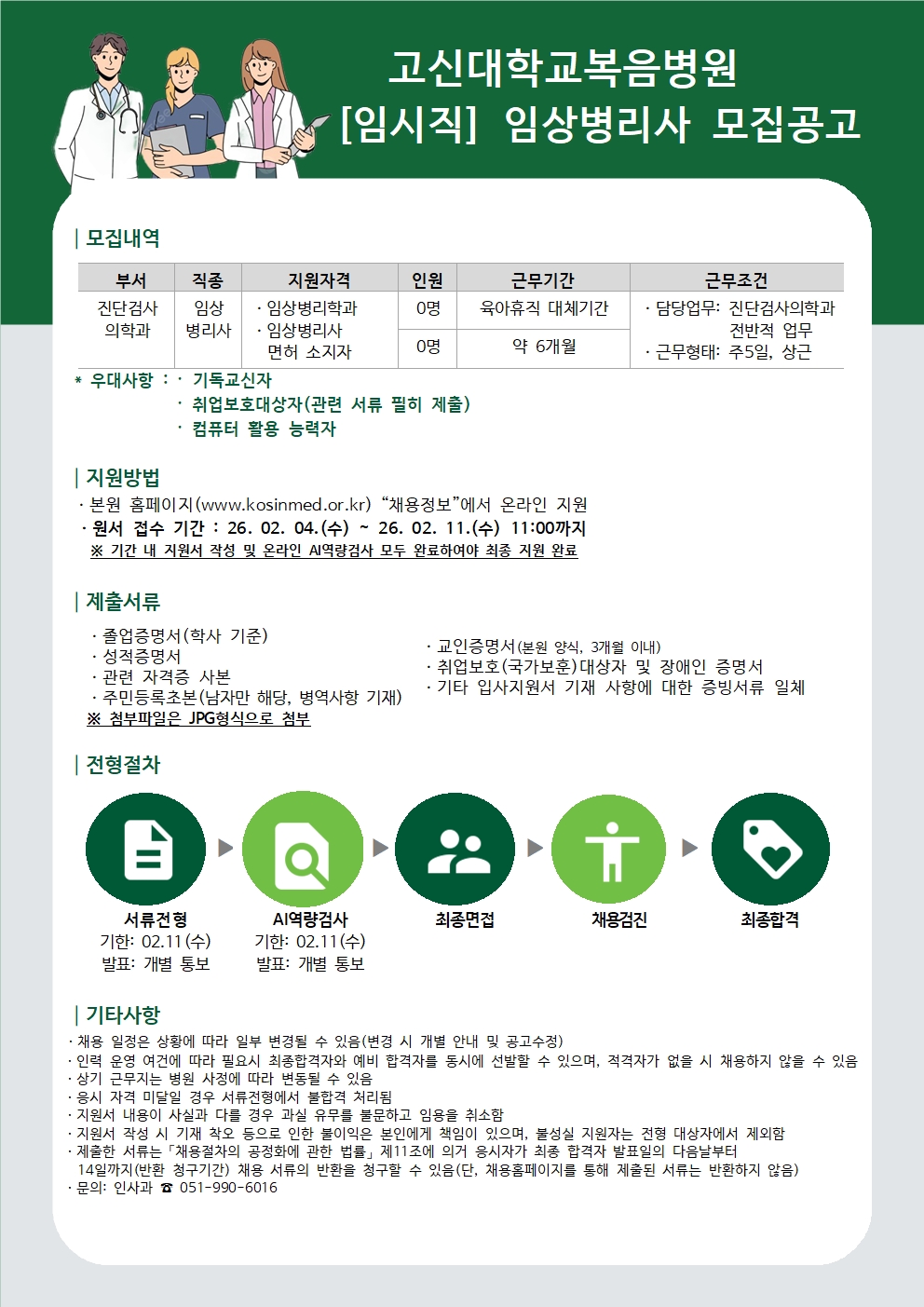 [임시직] 임상병리사 모집공고
