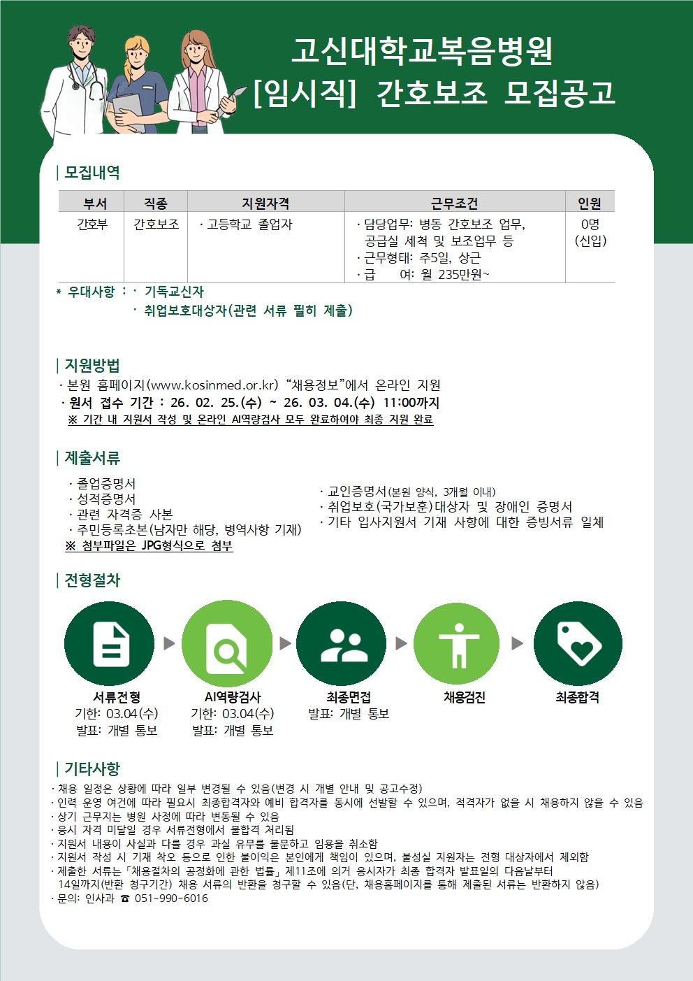 [일반직] 성명, 생년월일, 이메일, 휴대전화번호, 최종학력 및 학점, 면허사항 [의사직] 성명, 생년월일, 이메일, 휴대전화번호, 최종학력 및 학점, 면허증, 자격사항, 경력사항, 병역사항 [전공의] 성명, 생년월일, 휴대전화번호, 면허사항 |